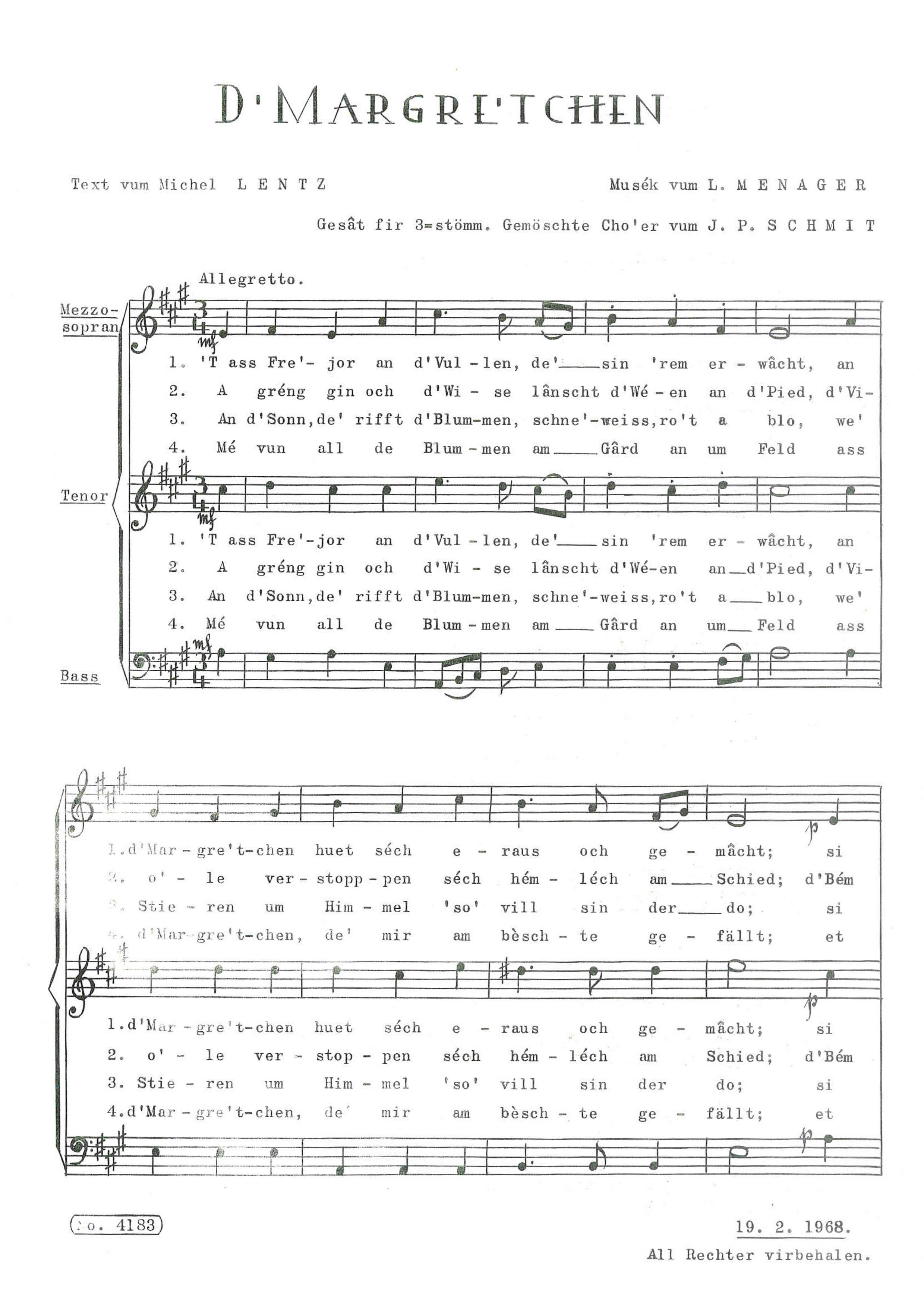 Le catalogue complet des oeuvres pour chorales de compositeurs/arrangeurs luxembourgeois est disponible ci -après au format Excel.
